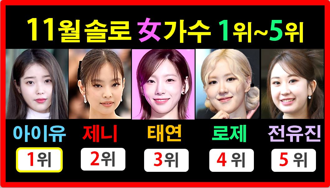 2025년 11월 솔로 여자 가수 No. 1에는 아이유가 선정되었습니다.